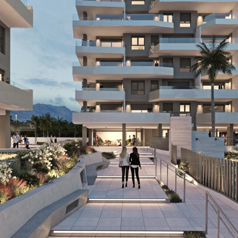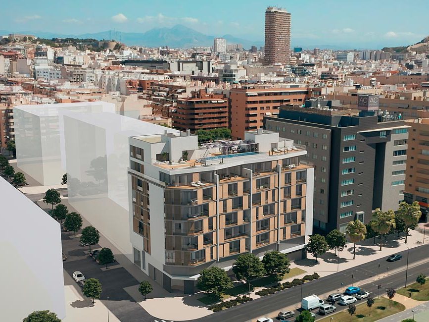Promoción compuesta por dos bloques de viviendas con urbanización con piscina, zonas ajardinadas, garaje y trastero en Alicante capital. También dispone de locales comerciales en planta baja.
