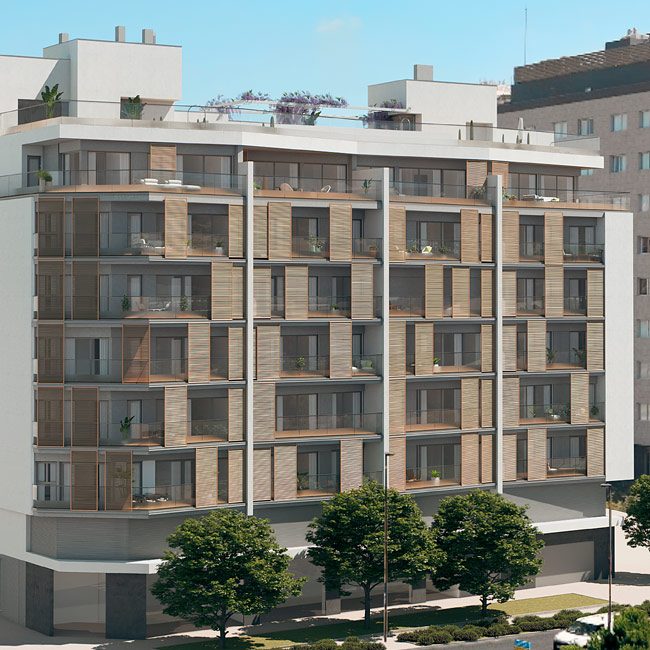 107 viviendas de 2 y 3 dormitorios y 8 áticos con solárium.