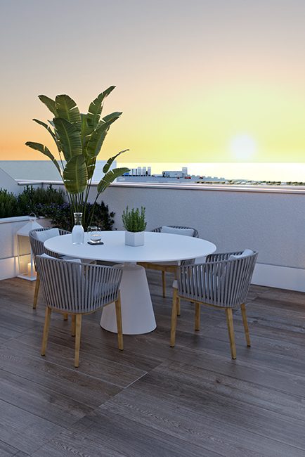 La urbanización cuenta con piscina infinity en cubierta con excepcionales vistas al mar, garaje y trastero.