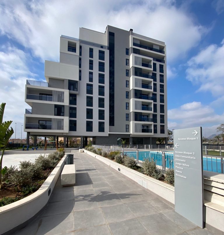 Promoción con vistas al mar compuesta por dos edificios de viviendas en plena playa de San Juan. Cuentan con urbanización, jardín y piscinas.